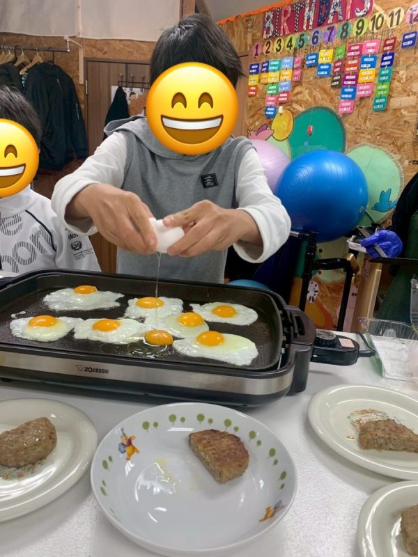 みんな上手に卵を割れました!美味しそうな匂いが部屋いっぱいに広がってお腹が減ってきました(笑)
