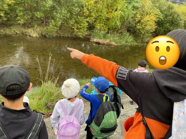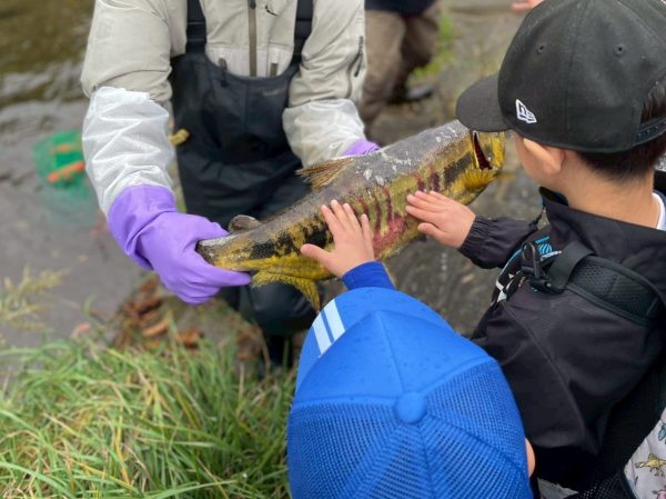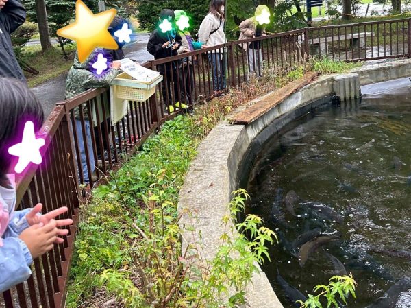今、川を泳いでいる鮭を見せてもらったり、鮭はどこにいて、どこからやってきたのか…たくさんお話を聞かせてもらえました😊