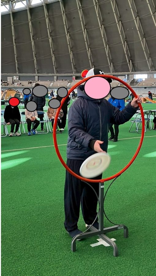 輪っかの中にフリスビーを投げ入れてます!正確に入れられるように頑張っております😁