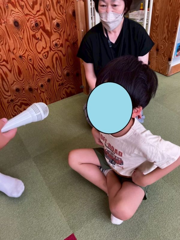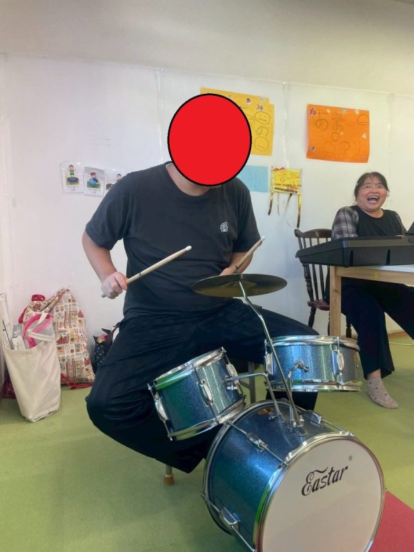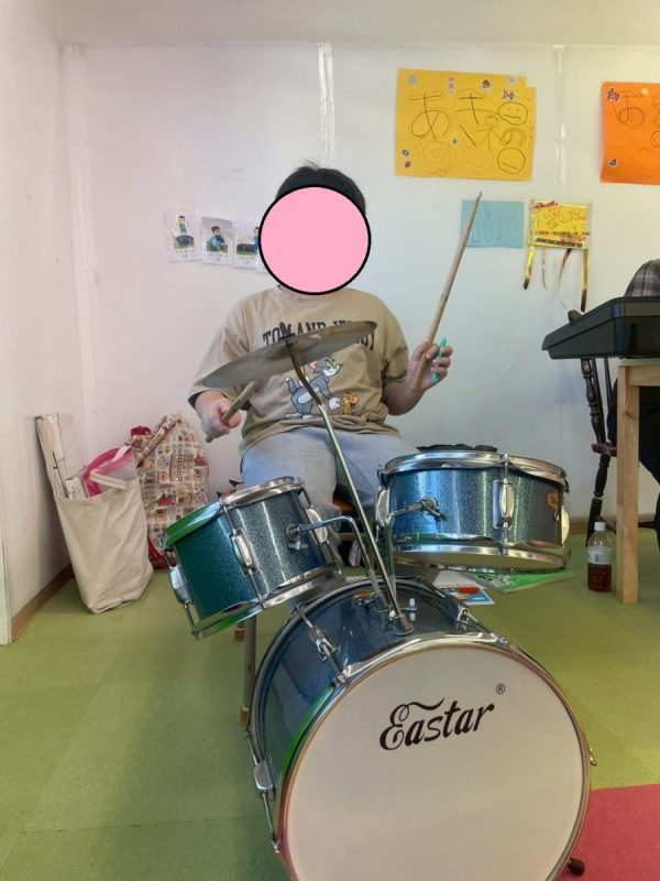 まずマイクで自己紹介をし、続いて自分の好きな歌を聴きながらドラムを叩き、他の子どもたちも別の楽器で一緒に演奏してくれたので、みんな笑顔で思わずほっこりしました( *´艸`)