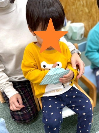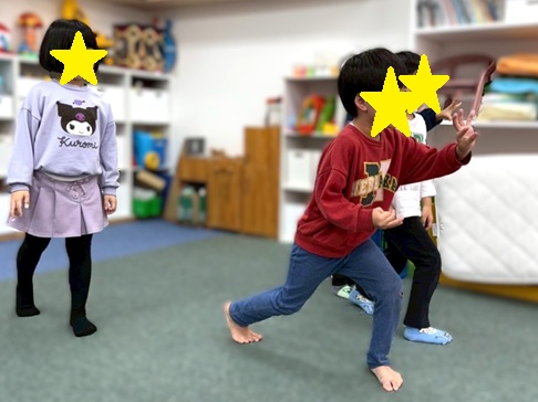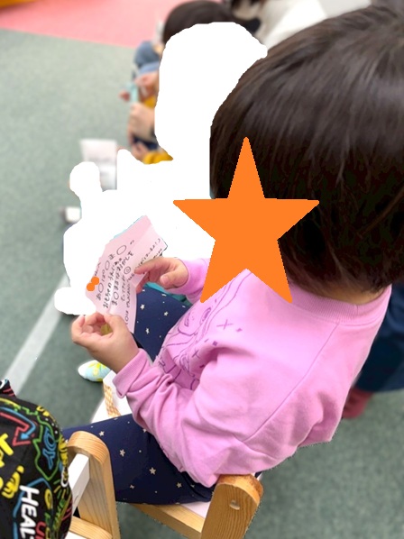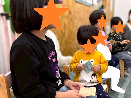 スタッフからヒントももらいながらみんな見つけ出すことができました✨✨1番難しかったのは‘‘鬼が切られたイラスト”でした👹「鬼が切られているね。鬼を切りました…おにきり…?」と少し難しいクイズでしたが年長さん頑張りました👏👏
