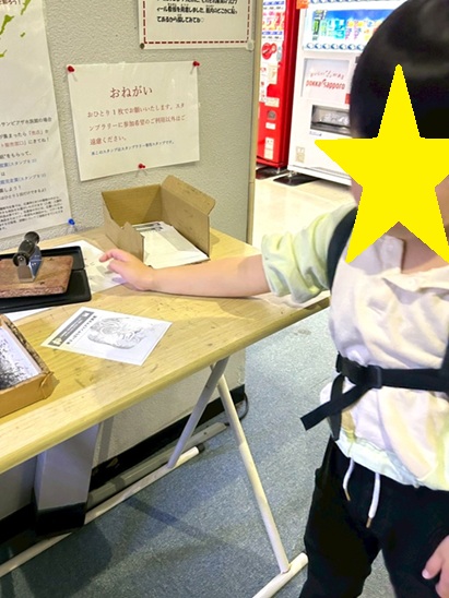 最後はスタンプを押しました!サケにスタンプを見せる子も🤭