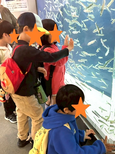 小さな魚がたくさん!!「100匹くらいかな?」「1万匹くらい?!」とあまりの多さにみんなびっくりでした!