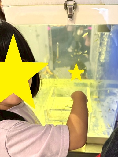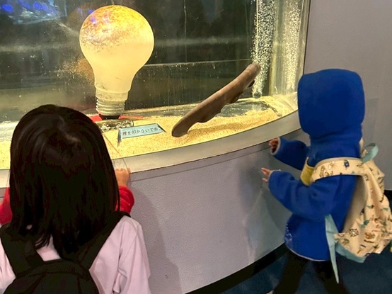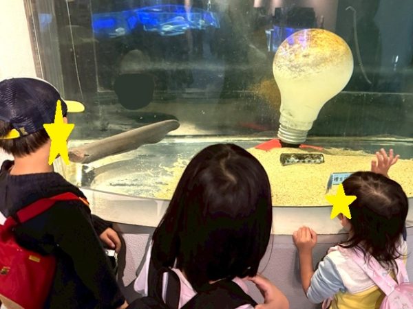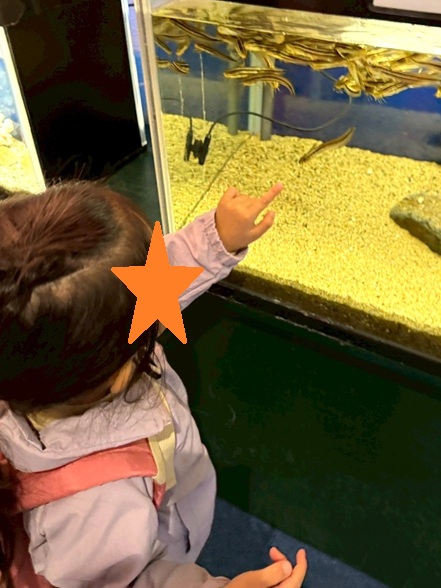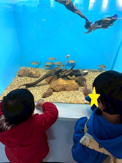 「なんで光るの?」「この魚触ったらビリビリするのかな?」と疑問が止まらない様子でした🤭