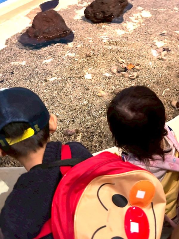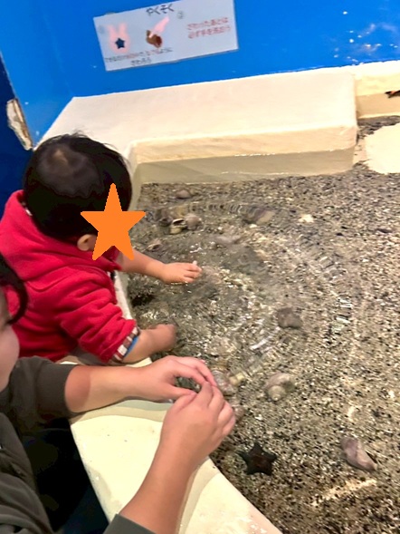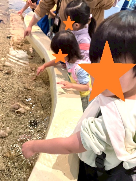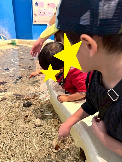 ヒトデや貝を触ってみました!「お星さまみたい~!」「なんかザラザラする!」と楽しむ姿がありました👏