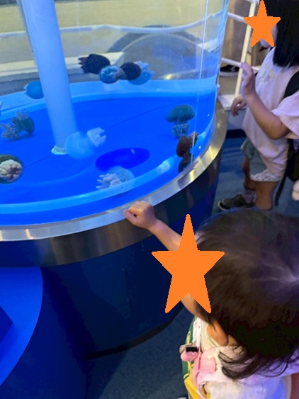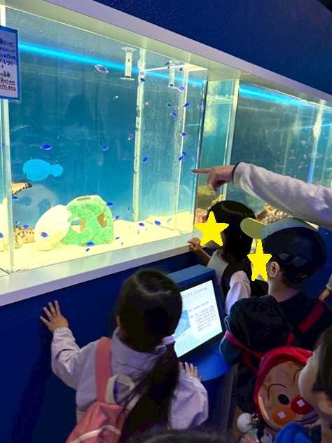 「ここに魚が隠れている!」と見つけたり、「きのこに見える~」とクラゲを観察してみたり…1つの水槽をじっくり見る子も多かったです✨✨