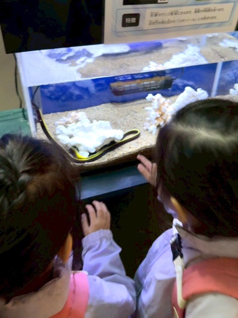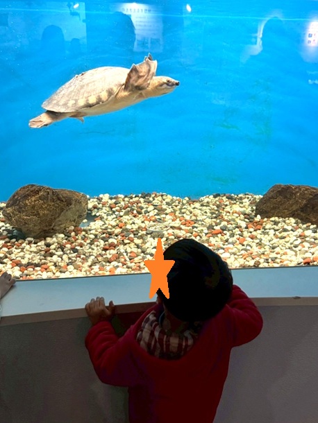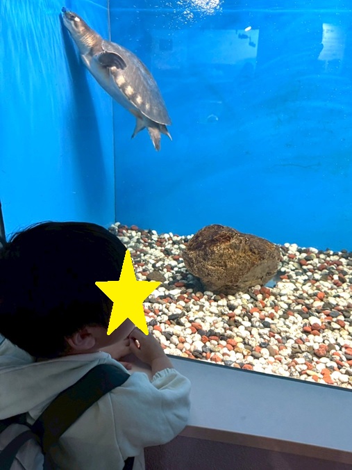 思い出に残ったのはどれ?と聞くと「カメかな」「ピカピカする魚(デンキウナギ)!!」「アザラシ可愛かったな~」とたくさん教えてくれました👂