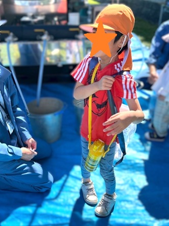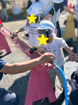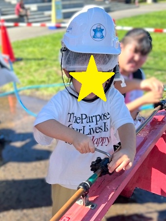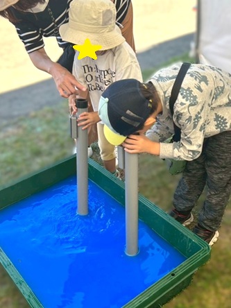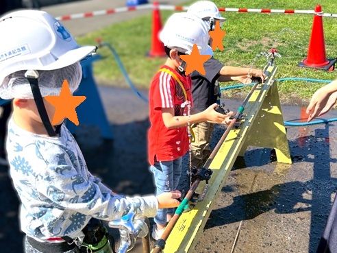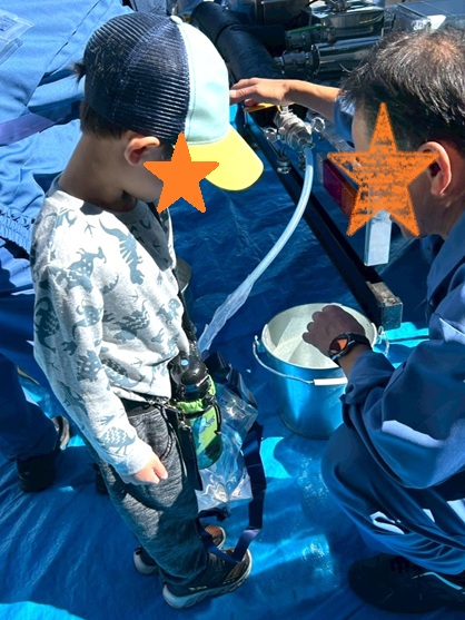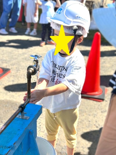 会場に入ってすぐの所に給水車が停まっており、興味津々な子どもたち🤩🤩🤩非常用のお水を入れる体験をしました🚰🚰