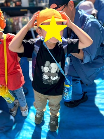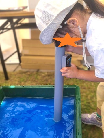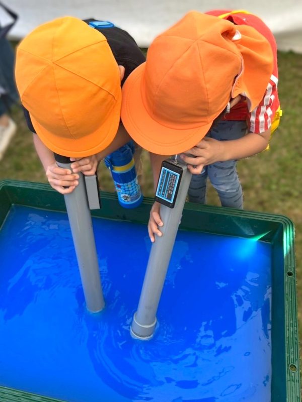 機械を使って水の中を点検中🔍🔍「ここに何か生き物がいるよ?!」「あれ?これウォッピーじゃない?」とマスコットキャラクターを発見した子もいました😂