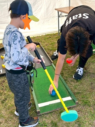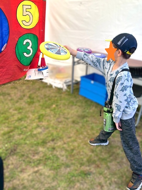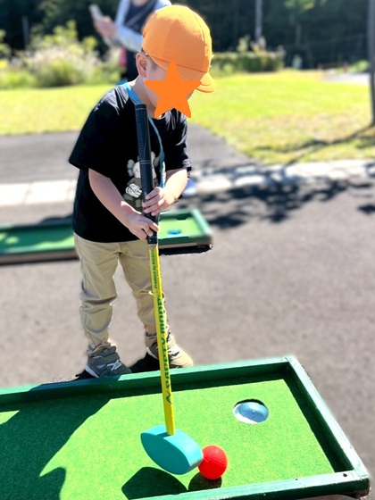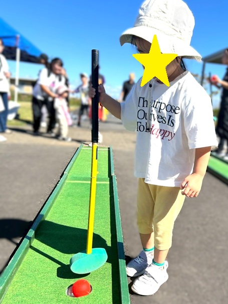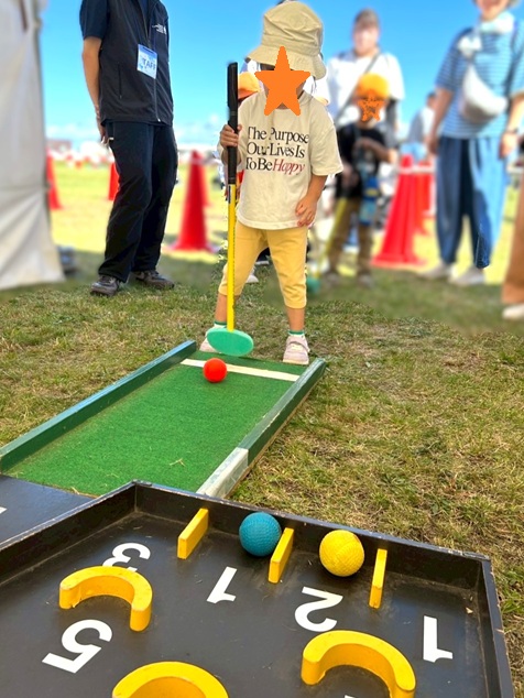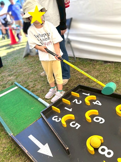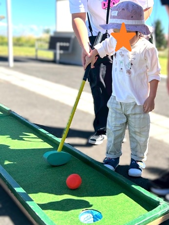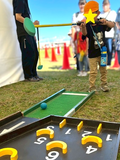 点数が書いてあるポケットを狙い、ボールを打ちます🏌️♂️🏌️♀️「見て!!10点の所に入ったよ!!」と大興奮でした😆😆