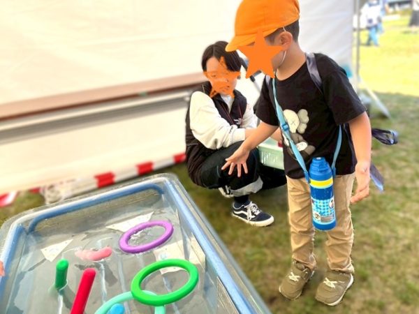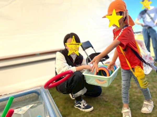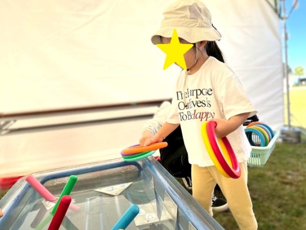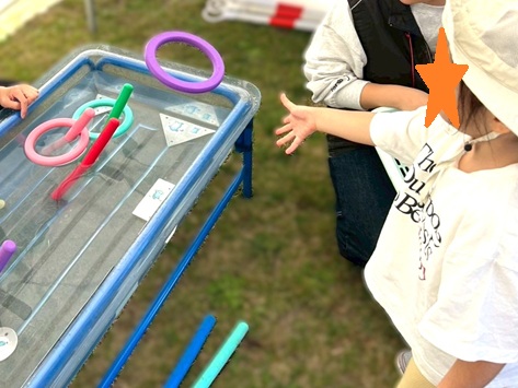 お水の中に棒があるため、狙いを定めてもユラユラ~と逃げられてしまいます😢優しいお姉さんのサービスで目の前から投げさせてもらい、「入ったよ!」と嬉しそうな子どもたちでした🤭🤭