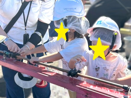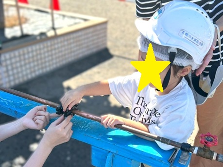 グッグッとねじを締める工程はかなり力が必要でしたが、自分たちの力で頑張りました👏👏最後は蛇口をひねって「お水が出て良かったね~」と一安心😮💨