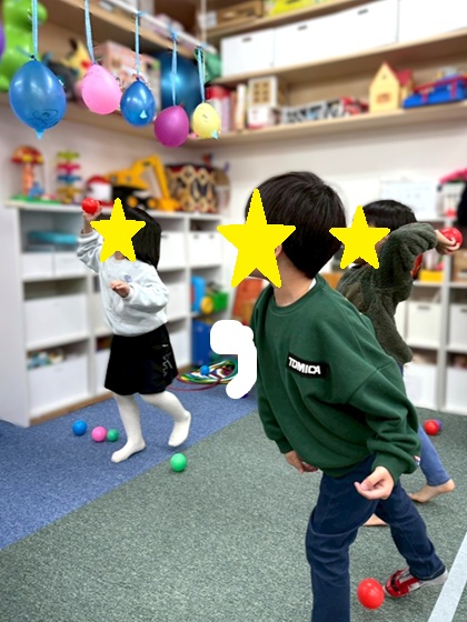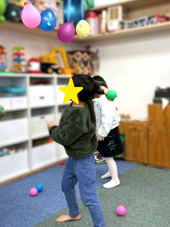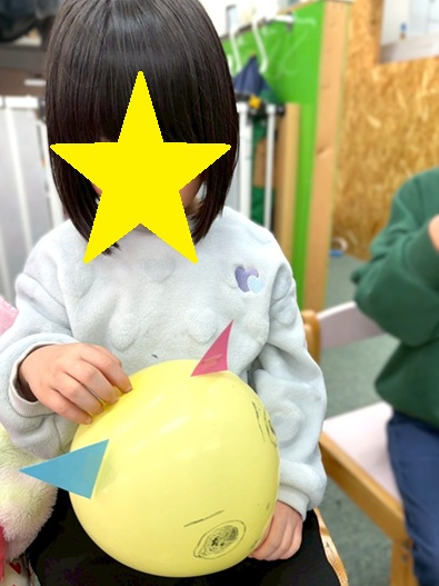 他の子が当てた反動でふわふわ動くのでよく狙いを定めてから「鬼は外!!」と上手に投げることができました✨✨