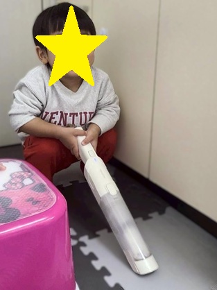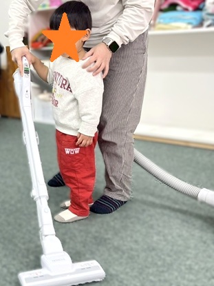 スタッフと一緒に大きな掃除機をかけます!細かなところはハンディ掃除機で😊
