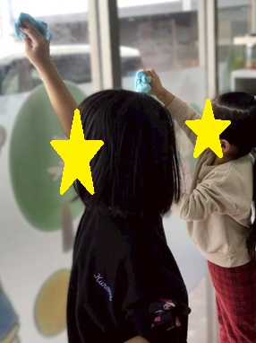 窓拭きチームはイスに登って、高いところも入念に拭いてくれました🧽🧽