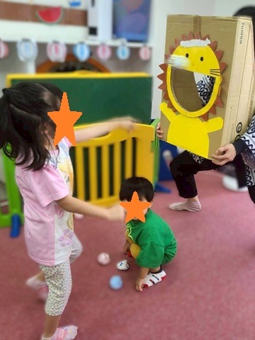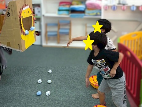 動くライオンさん相手に「待て待て~」と追いかけ、たくさん入れることができました✨