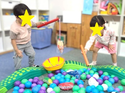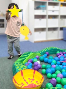 お水に見立てたボールプールにやってきたのは赤と黄色の金魚さん🐟🐟🐟「絵本で見たことある!!」とその正体に気が付いてくれる子もちらほら🤭30秒間で最高記録は7匹でした✨✨
