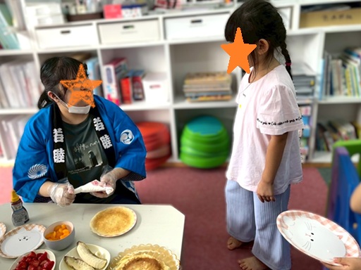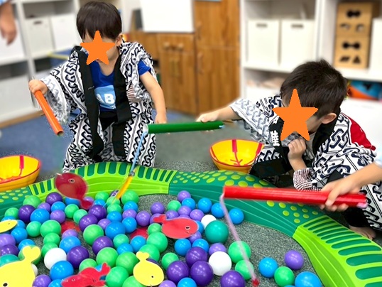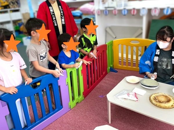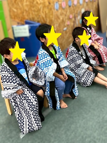 「今日からお祭り週間だよ~」と伝えると「今日だけじゃないの?!」「毎日お祭りなの?」とみんなびっくりな様子😲