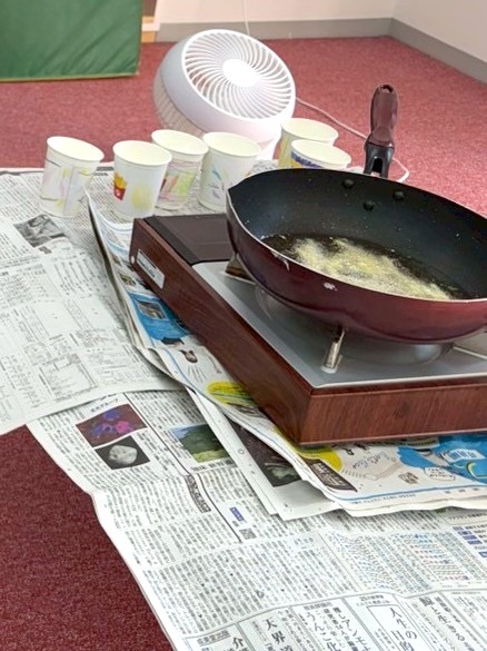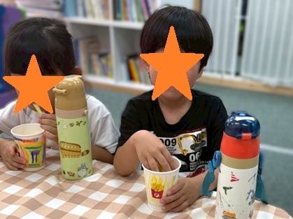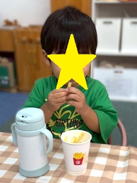 ポテトを入れている紙コップはみんなに装飾してもらいました🖍️🖍️🖍️「たくさん食べたいから!」とポテトをたくさん描く子や大好きなキリンの模様を表現する子…とても個性的な装飾になりました✨✨