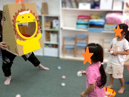 ライオンさんの大きく開いたお口にボールを投げます🤾♀️🤾♂️