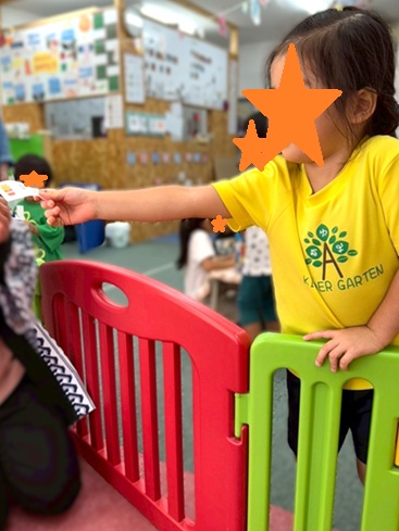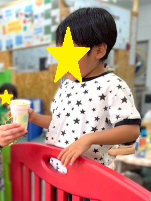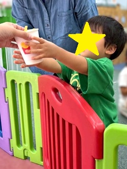 引換券を持ってお名前と「ポテトください!」をスタッフに伝えます!少し緊張している子もいましたが、全員しっかり伝えることができました👏👏👏