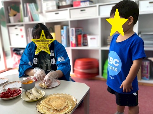 「なんか甘い匂いがする~!!」とみんな釘付けです🤤🤤🤤クレープ生地をどう焼くのか、真剣に見ています!
